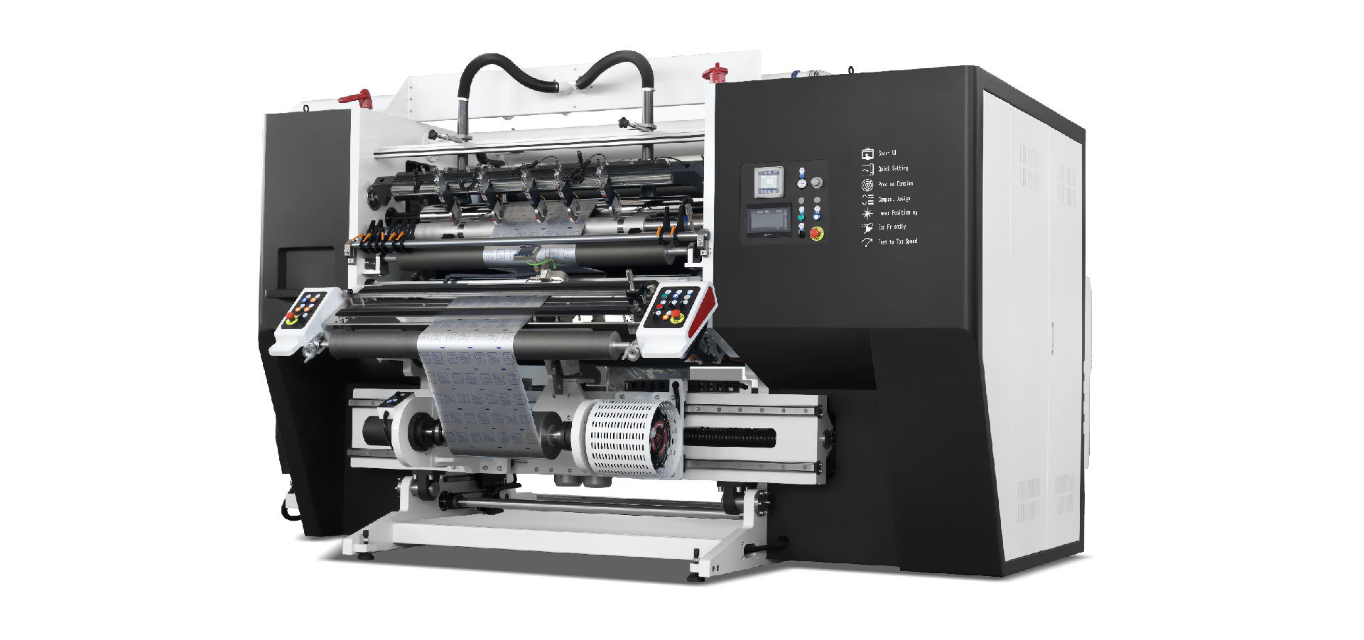 適用于:杯蓋膜、食品藥品包裝、印刷標(biāo)簽、復(fù)合材料的卷材分切